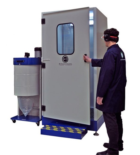 Incorporating ACI's JetBlack Cleaning Station, the advantage of the Cleaning Booth is that workers, without removing clothing/PPE equipment, can simply enter and operate the booth. Within approximately 20 seconds all visible traces of dust removed can be removed from clothing. The high velocity, low pressure airflow produced by the JetBlack dislodges even hidden dust. The dust is then captured and filtered within the extraction unit.